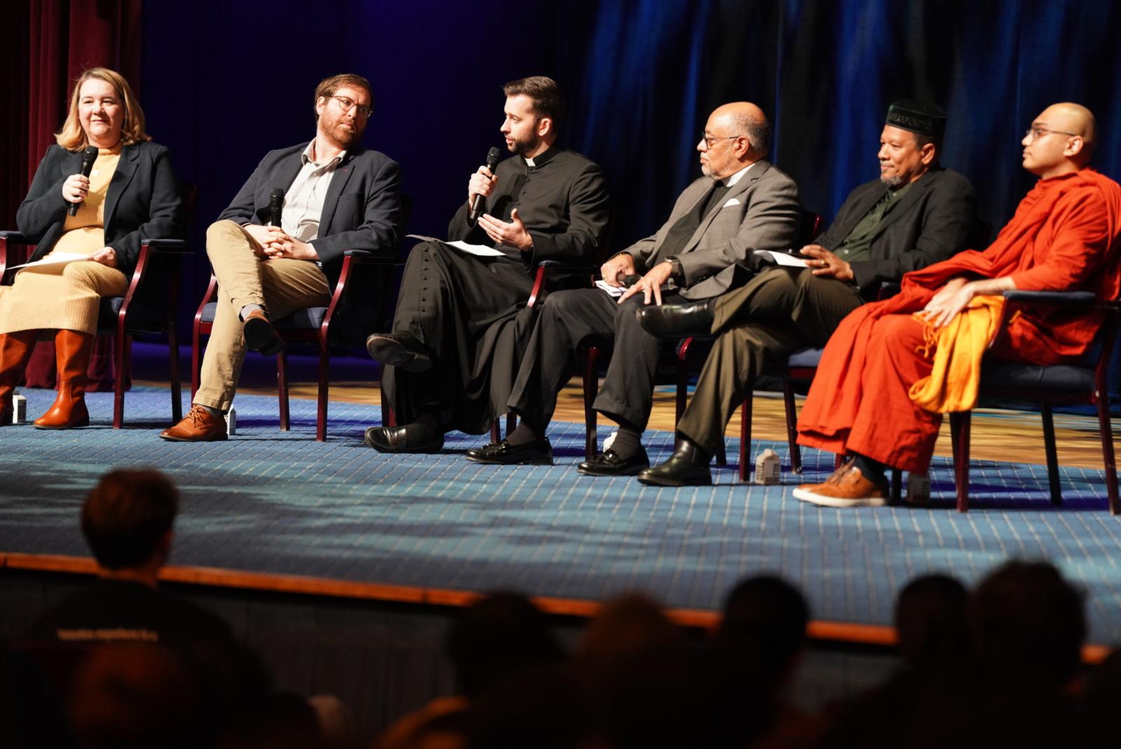 Monday’s event began with an opening program at Lisner Auditorium. University Chaplain, Kristen Glass Perez moderated an interfaith panel with Imam Dr. Talib Muttaqee Shareef, (Masjid Muhammed, The Nation’s Mosque), Fr. James Glasgow (GW Newman Center), Rev. Amitha Kema Thero (The Buddha Meditation Center of DC), Rabbi Daniel Novick (GW Hillel), and Rev. Canon Leonard Hamlin, Sr (The Washington National Cathedral).