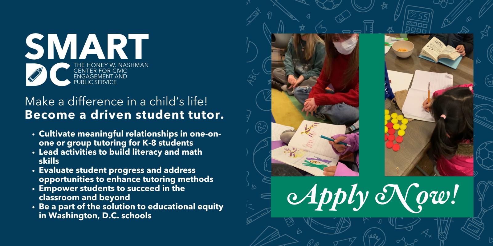 This opportunity is open to undergraduate and graduate students interested in education and tutoring.