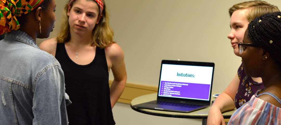 At the end of each semester, students are invited to share presentations about their experiences working in community partnerships. They present research findings, educate the public about important social issues, and their reflections on issues related to equity, justice, and our civic roles.